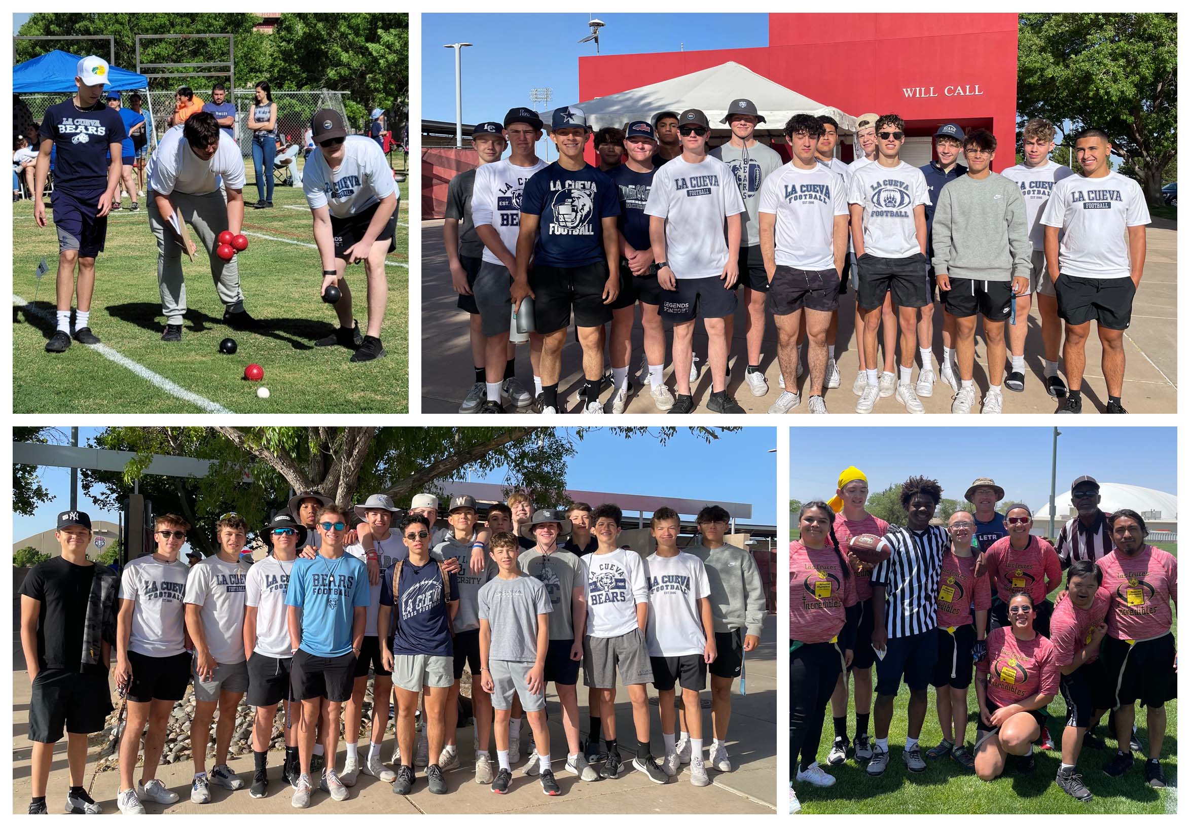 In 2022, 158 La Cueva football players, representing all 3 program level teams, participated in the Lift-a-Thon and lifted over 90,000 pounds. The players broke up into 6 teams to compete and lift their personal bests.